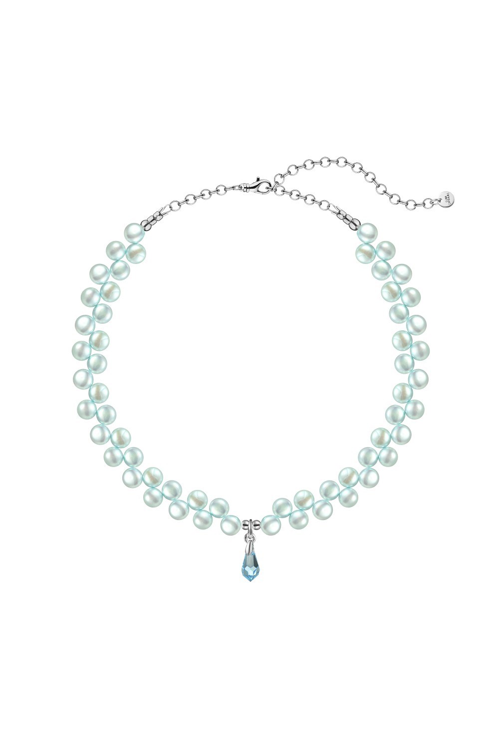 Natural pearls, crystal, rhodium-plated jewelry alloy (precious platinum group metal) fittings